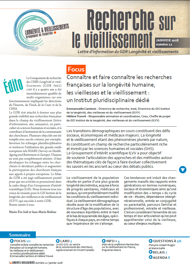 GDR Longevity and Aging (Longévité et Vieillissements)